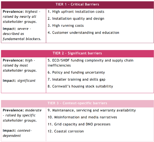 - Establishing the barriers to heat pump adoption, across all tenure types, that Cornwall stakeholders perceive to be holding back increased deployment.